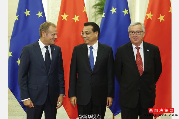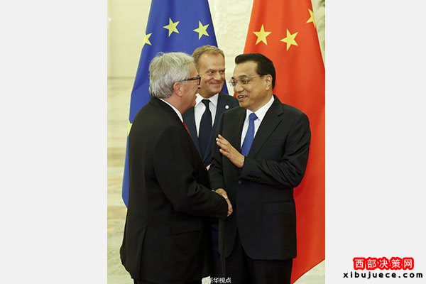 新華網(wǎng)北京7月12日電國務(wù)院總理李克強12日下午與歐洲理事會主席圖斯克、歐盟委員會主席容克共同主持第十八次中國歐盟領(lǐng)導人會晤。雙方就鞏固中歐政治互信、穩(wěn)步落實合作共識、加強國際和地區(qū)事務(wù)中的溝通與協(xié)調(diào)等深入交換意見。(據(jù)新華社“新華視點”微博報道)