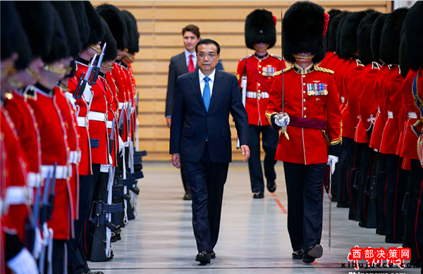 加拿大總理特魯多主持儀式歡迎李克強(qiáng)到訪