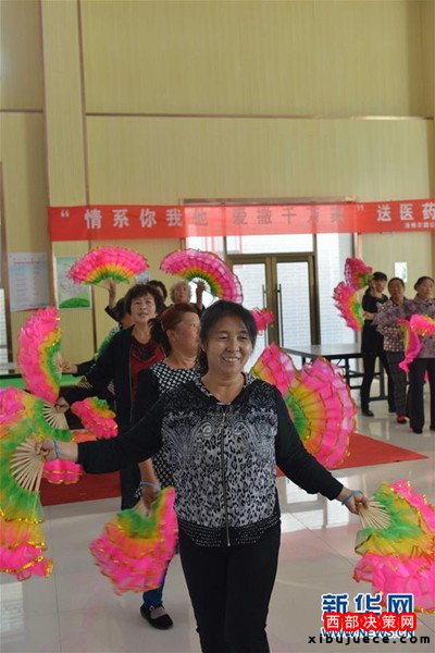 準(zhǔn)格爾旗巴潤(rùn)哈岱村村民在村里的文化活動(dòng)室表演自導(dǎo)自演的節(jié)目(9月24日攝)。