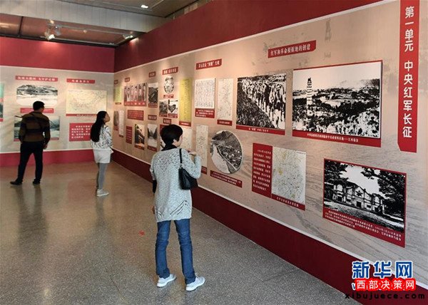 10月8日,參觀者在甘肅省博物館觀看主題展覽。當(dāng)日,甘肅省紀(jì)念紅軍長征勝利80周年主題展覽在甘肅省博物館開展。展覽以“弘揚(yáng)長征精神堅(jiān)定理想信念”為主題,展示紅軍長征的光輝歷史,展現(xiàn)了紅軍長征的光輝征程。