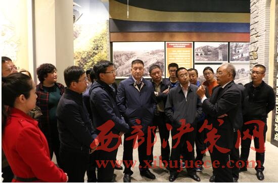 在付丹丹的講解中,黃伯韡一行走進(jìn)“紅色南梁”,來(lái)到“兩點(diǎn)一存”主題廣場(chǎng),考察組對(duì)中國(guó)地理版圖的造型設(shè)計(jì)和紅飄帶景觀布局大加贊賞,隨后陸續(xù)參觀了南梁革命紀(jì)念館、寨子灣陜甘邊區(qū)蘇維埃政府(軍委)舊址、抗大七分校校部舊址、軍民大生產(chǎn)基地舊址及中國(guó)延安干部學(xué)院南梁教學(xué)點(diǎn)。