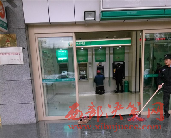 昨晚9時(shí)許,記者聯(lián)系上小張,他是西安理工大學(xué)的學(xué)生,今年20歲。小張回憶說,這是昨日上午9時(shí)許他在銀行門口看到的一幕,一位50歲左右的農(nóng)民工,將鞋放在銀行門口,然后進(jìn)到銀行里面,“怎么進(jìn)去的我沒看見,只看見他脫鞋了,后來跪在ATM機(jī)前操作。”