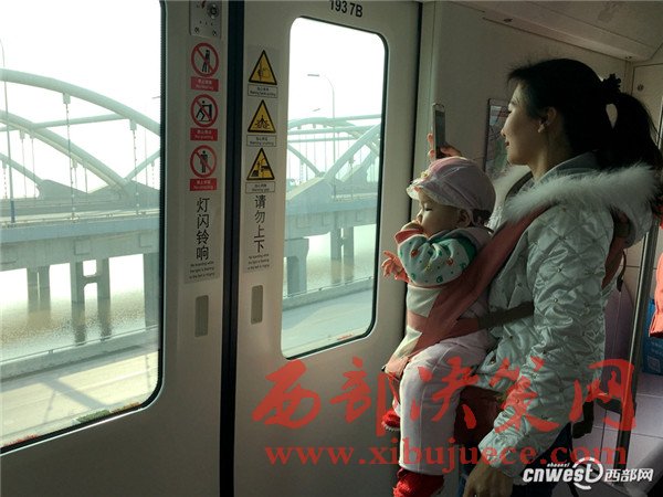 在試乘活動(dòng)中,小妤成為了攝影師們的焦點(diǎn)。她一會(huì)兒看看左邊一會(huì)看看右邊,小手不停的揮舞??匆?jiàn)攝影記者的鏡頭,一邊揮手還一邊咿咿呀呀,一點(diǎn)也沒(méi)有怯場(chǎng)。據(jù)地鐵工作人員介紹,目前小妤是三號(hào)線最小的乘客。