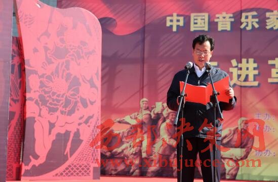 下午1點(diǎn),“長征精神代代傳——中國音樂家協(xié)會金鐘之星藝術(shù)團(tuán)‘送歡樂•下基層’”慰問演出在南梁“兩點(diǎn)一存”紅飄帶廣場拉開序幕,吸引了慶陽、華池周邊縣域的群眾近40000余人觀看了演出。中共慶陽市委書記贠建民、中國音樂家協(xié)會分黨組書記韓新安分別致辭,表達(dá)了他們的誠摯謝意和問候。