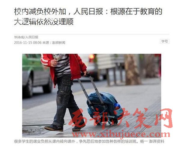 是學校錯了嗎?學校響應行政命令,給學生減負。這幾年學生的課業(yè)負擔從校內轉到校外,從側面說明減負也有了一定成效。
