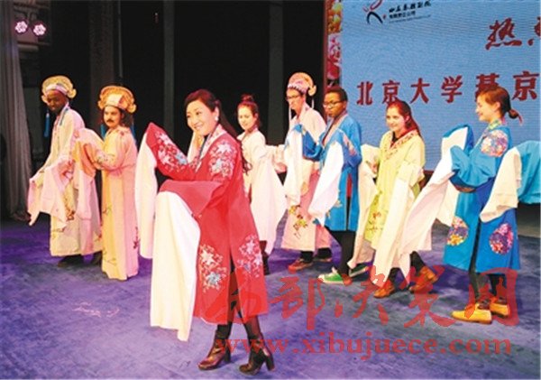 臺下就座的,則是一群特殊的學生——北京大學燕京學堂的來自42個國家和地區(qū)的學生們,他們把易俗社小劇場坐得滿滿當當。在英語翻譯的配合下,秦腔這種中國非物質(zhì)文化遺產(chǎn)的精髓被一點點輸入他們的腦海。