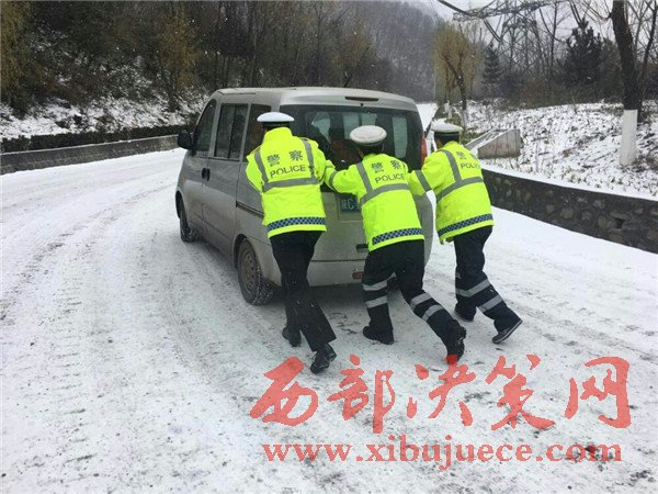 秦嶺初雪行路難 寶雞交警保暢通