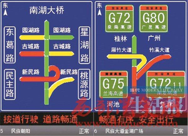 “至埌東客運(yùn)站旅行時(shí)間5分鐘”的提示,同時(shí)顯示周邊多條道路都是綠色……駕車在民族大道上會看到類似這樣的提示,這是南寧交警部門與高德地圖合作的成果。目前,高德地圖提供的實(shí)時(shí)路況交通信息已經(jīng)陸續(xù)上線南寧市交通誘導(dǎo)屏。在民族大道沿線的60塊誘導(dǎo)屏,均可以清楚地反映實(shí)時(shí)路況信息和道路擁堵狀況。