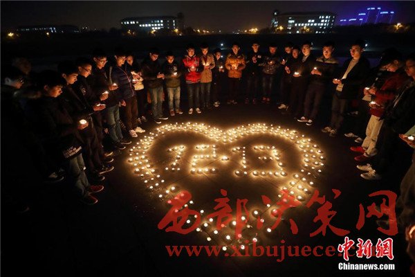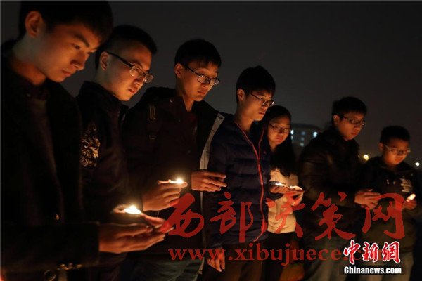 12月12日晚,在第三個國家公祭日前夜,主題為“愿逝者安息,為生者祈福”的燭光祭活動在南京東南大學(xué)九龍湖校區(qū)內(nèi)舉行,來自該校機械工程學(xué)院的大學(xué)生們點燃蠟燭,擺放成心形和1213字樣,為南京大屠殺死難者集體默哀,寄托哀思。