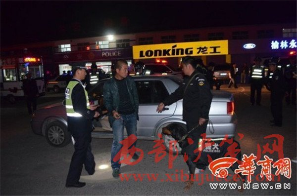 府谷縣公安局警犬訓(xùn)導(dǎo)隊帶領(lǐng)警犬上街巡邏