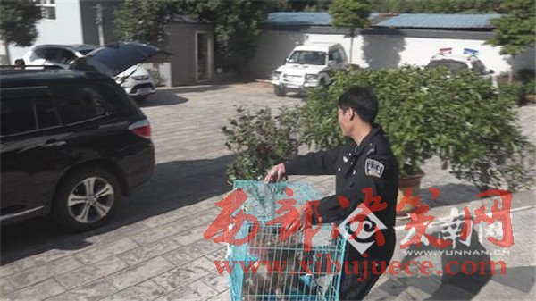 12月13日,新平縣森林公安局接到戛灑鎮(zhèn)林業(yè)站轉(zhuǎn)警稱:“一只猴子四處搗亂,被群眾送到了戛灑鎮(zhèn)派出所,請派員處理。”接警后,縣森林公安局民警立即出警,前往派出所共同處理。