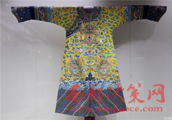 2017年01月05日,遼寧省沈陽市,沈陽故宮博物院舉行“錦繡華彩—院藏清宮織繡展”,清朝皇帝冬季朝袍首次亮相。沈陽故宮是中國(guó)僅存的兩大古代皇家宮殿建筑群之一,為清朝初期努爾哈赤和皇太極的宮殿,距今近400年歷史,貯藏近20萬件清宮御用物品和內(nèi)府秘籍。清明黃江綢繡金龍出鋒夾朝袍。