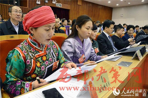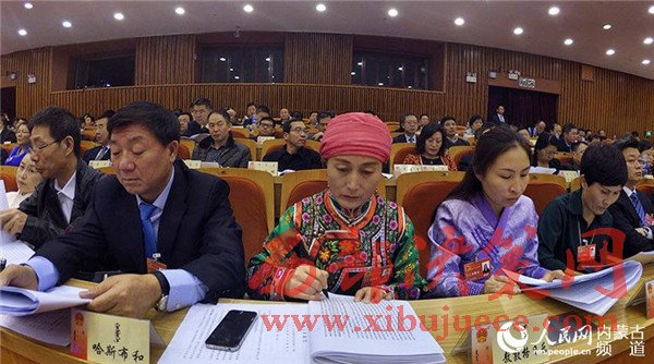 民主、團(tuán)結(jié)、求實、奮進(jìn)。內(nèi)蒙古人民會堂格外莊嚴(yán),主席臺帷幕中央國徽高懸,會場氣氛隆重?zé)崃摇?/span>