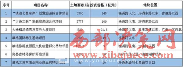 資料顯示,大漁片區(qū)位于滇池東岸,面積25平方公里,約37500畝。根據(jù)昆明滇池旅游度假區(qū)信息,大漁片區(qū)2016年共7個(gè)項(xiàng)目統(tǒng)一招商,總占地面積9997.7畝,總投資額預(yù)計(jì)約353.6億元。意味著本次大批量招商項(xiàng)目供地所占土地比例幾近于大漁片區(qū)總面積的三分之一,如此大規(guī)模的土地供應(yīng)量和投資額,如果最終招商仍然無(wú)果,那么大漁片區(qū)大量土地“待嫁”的現(xiàn)狀暫時(shí)難以改變。