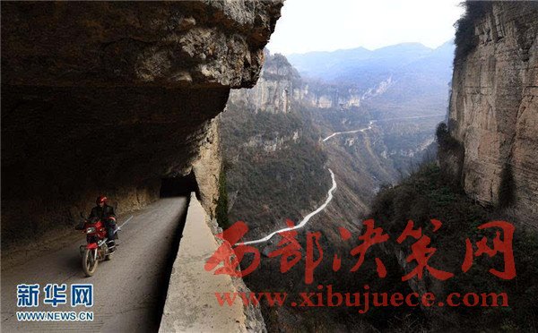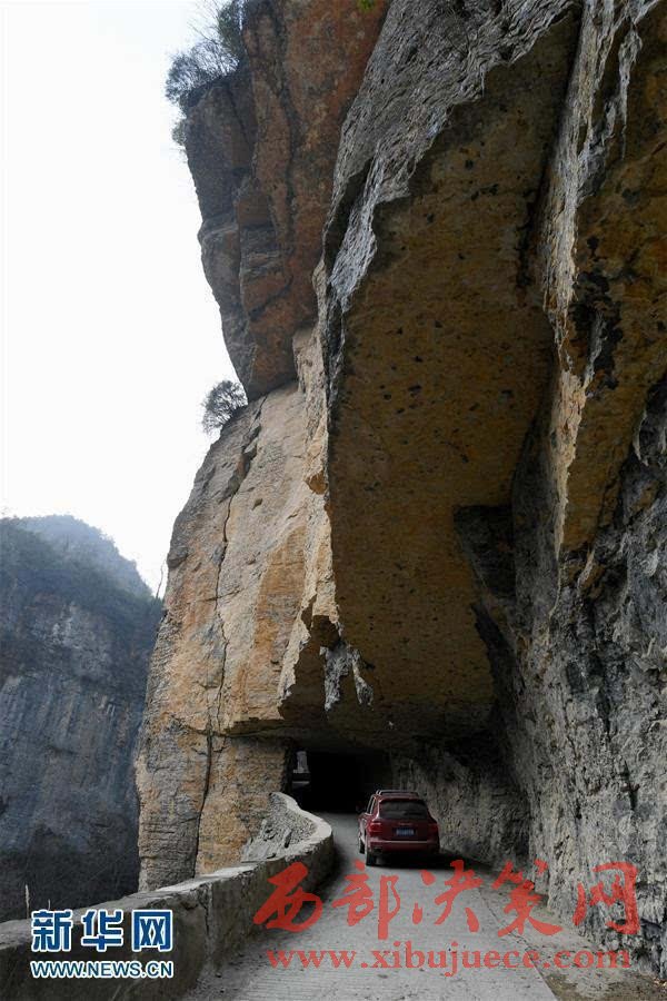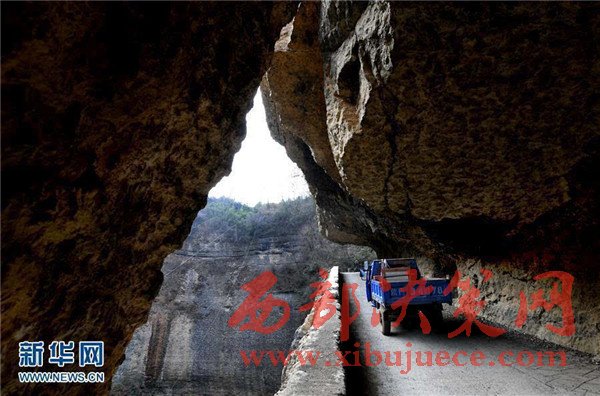 在巴山深處的陜西省寧強(qiáng)縣內(nèi),有一段在懸?guī)r上開(kāi)鑿的掛壁公路,連通毛壩河鎮(zhèn)和西方溝村。這條公路是西方溝村全村干部群眾自行設(shè)計(jì)修建的。曾經(jīng),西方溝村的村民要翻山越嶺約2個(gè)小時(shí)才能到達(dá)公路乘車出行;現(xiàn)在,當(dāng)?shù)卮迕裰恍枳呱?0分鐘就能乘車外出。