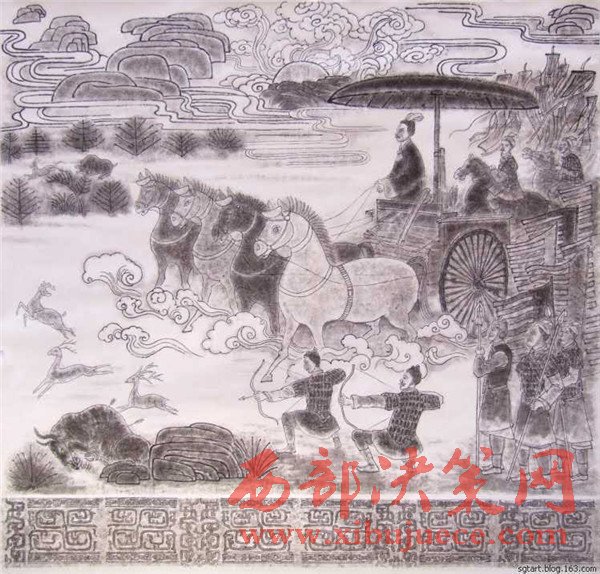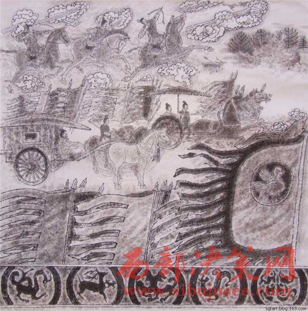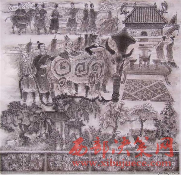 曹老經(jīng)過(guò)深思熟慮后1989年作出第一幅石鼓畫像,但他并不滿意。石鼓文的博大精深、源遠(yuǎn)流長(zhǎng)豈能是他輕易能描繪得出來(lái)的!他覺得自己還沒有吃準(zhǔn)石鼓文的深邃含義。他明白:淺薄自滿是藝術(shù)的致命傷,能對(duì)自己自省和不滿的人,才會(huì)創(chuàng)作出能經(jīng)得起時(shí)間和歷史檢驗(yàn)的藝術(shù)佳作。曹老痛下心撕了又畫,兩易其稿后,心里還不踏實(shí),他必須尋找“最為挑剔的眼睛”。于是,他帶著十幅畫作,趕赴京城,讓石鼓專家鑒定審核。果不其然,專家們給他指出了一些問(wèn)題:畫的時(shí)間不對(duì),人物衣著不符合朝代特征。曹老虛心聽取了專家的意見,他返回寶雞,廢棄了原稿,重新考證人物的歷史特征,生活細(xì)節(jié)的一點(diǎn)一滴。他為了能精確地描繪先秦時(shí)期的人物和服飾,甚至每一件物件、器皿、圖案,他借來(lái)了秦兵馬俑博物館的圖像和資料,依據(jù)兵馬俑中人物的衣著打扮,紋飾車馬,2000年之后,第三次拿起筆重新準(zhǔn)確地描繪出了十面石鼓中的眾多人物、眾多民俗風(fēng)情。為了讓《石鼓文圖》經(jīng)受更嚴(yán)格的“審批”,曹老并沒有急于發(fā)表,而是連續(xù)奔波了幾年,直到2007年終于定稿與世人見面。