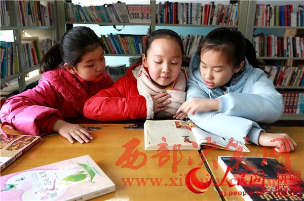 2月4日,新疆生產(chǎn)建設(shè)兵團第五師八十一團城鎮(zhèn)社區(qū)的農(nóng)家書屋里,學(xué)生們在閱讀自己喜愛的書籍。