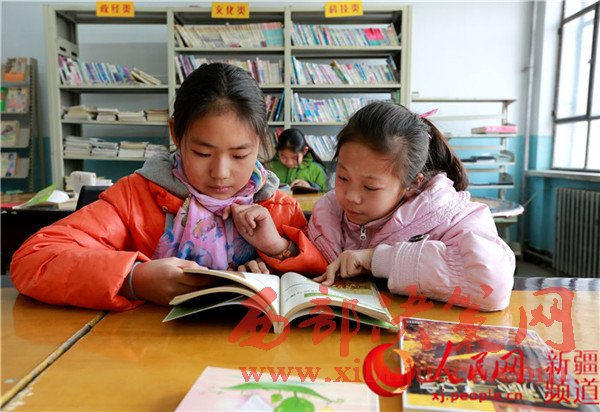八十一團在校學(xué)生在城鎮(zhèn)社區(qū)農(nóng)家書屋里閱讀圖書。
