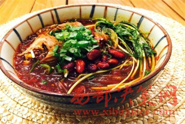 “重慶酸辣粉”是重慶城鄉(xiāng)間廣為流傳的傳統(tǒng)名小吃,主粉由紅薯、紅苕、豌豆按最佳比例調(diào)和,然后由農(nóng)家用傳統(tǒng)手工漏制而成。