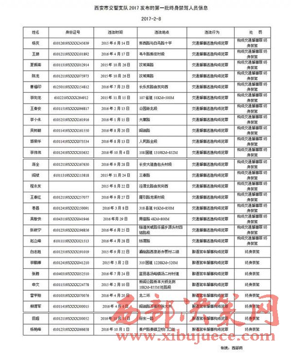 西安交警曝光27名終身禁駕者 交通肇事逃逸占多數(shù)