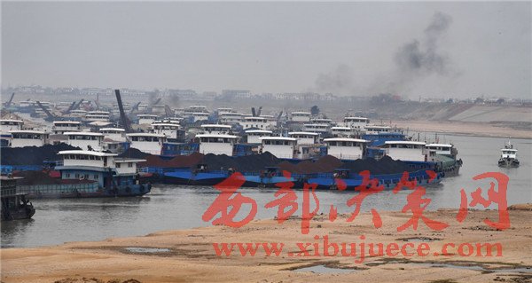 2月20日,船只擁堵在枯水期的湘江湘陰蘿卜洲航道內(nèi)。