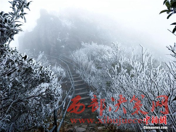 原標題:廣東連山縣金子山再降春雪現(xiàn)奇特冰桂