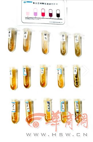 華商報(bào)記者在市場上購買了新鮮的菠菜,白菜,小白菜,油麥菜,青菜,拿到西安營養(yǎng)學(xué)會(huì),專家通過實(shí)驗(yàn)的方法,檢測新鮮蔬菜、冰箱存放48小時(shí)的蔬菜、常溫存放48小時(shí)的蔬菜中亞硝酸鹽含量的變化。