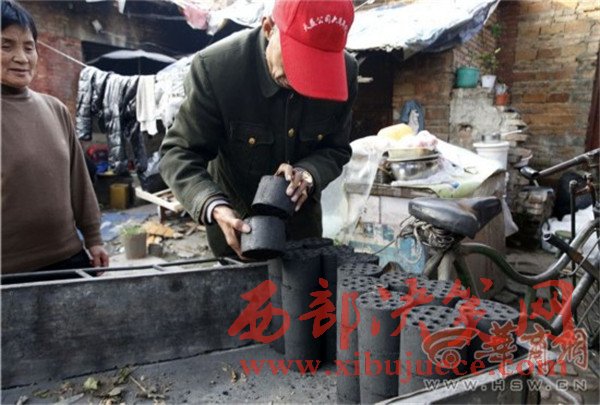 一進門,看見61歲的夏平安坐在門房里,端著個大老碗正在吃面。華商報記者問:“自己做的面?”他停止吃面,頭一抬,慢慢地說:“老板做的。”他待的是煤場門房,也是他的宿舍,屋子里靠墻擺著一張單人床,上面鋪著厚厚的被褥。院子里堆了好多已經打好的煤球。