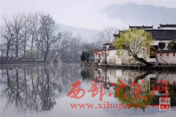 安徽黟縣宏村風(fēng)景區(qū)南湖景點(diǎn)的早春春色