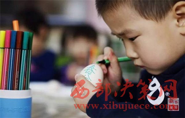河北衡水的一名幼兒園小朋友在手繪彩蛋。