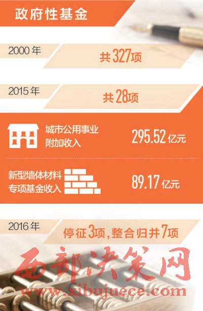 經(jīng)過(guò)幾輪清理規(guī)范后,到2015年,政府性基金已從2000年的327項(xiàng)減少到28項(xiàng)。2016年,國(guó)家進(jìn)一步清理收費(fèi)基金,停征價(jià)格調(diào)節(jié)基金等3項(xiàng)政府性基金,整合歸并散裝水泥專項(xiàng)資金等7項(xiàng)政府性基金。特別是針對(duì)小微企業(yè),加大了降費(fèi)力度。