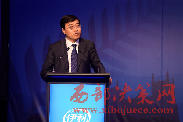 伊利集團(tuán)董事長兼總裁潘剛在“伊利大洋洲生產(chǎn)基地(二期)揭牌暨金領(lǐng)冠睿護(hù)奶粉面世儀式”上發(fā)表主旨演講。