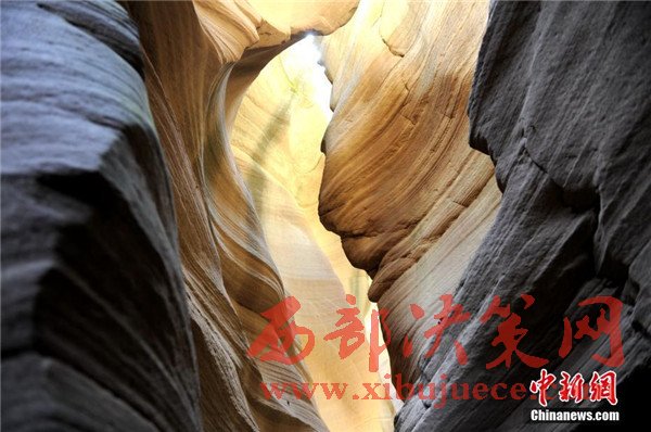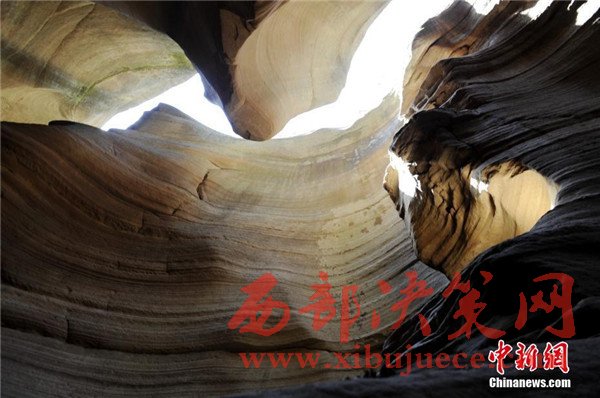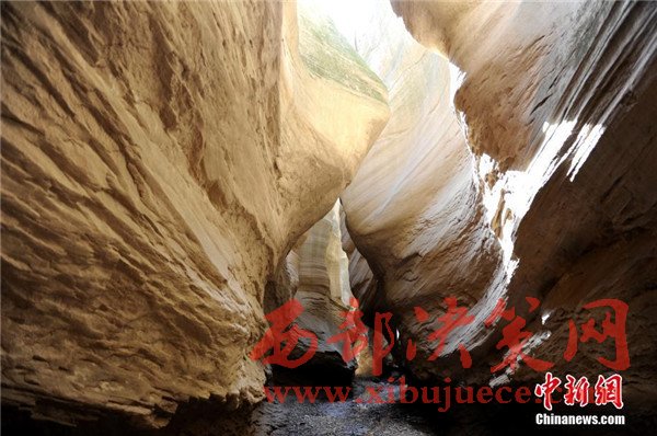 位于陜西省甘泉縣雨岔村的峽谷,是陜北黃土高原上的地質(zhì)奇觀,峽谷內(nèi)壁凹凸不平、線條流暢,走進(jìn)峽谷,峽壁上的線條如波浪從身邊劃過,最窄的地方只有一個人側(cè)著身子方可過去,其迷人之處與美國羚羊峽谷相媲美。