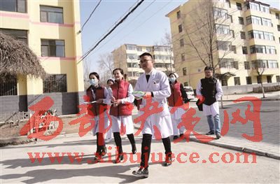 家庭醫(yī)生服務(wù)團(tuán)隊(duì)人員走在上門(mén)訪視的路上。