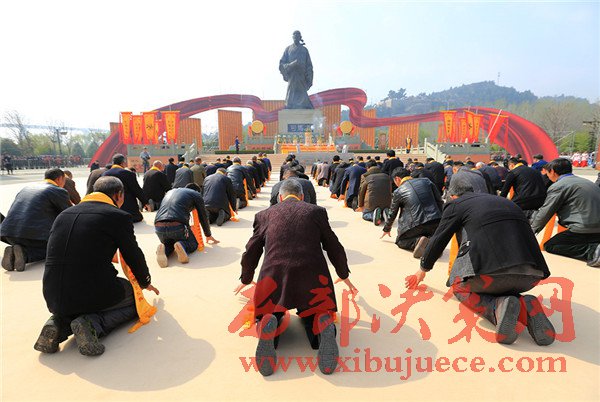 3月31日,司馬遷后裔在陜西省韓城市司馬遷祭祀廣場叩首祭拜司馬遷。