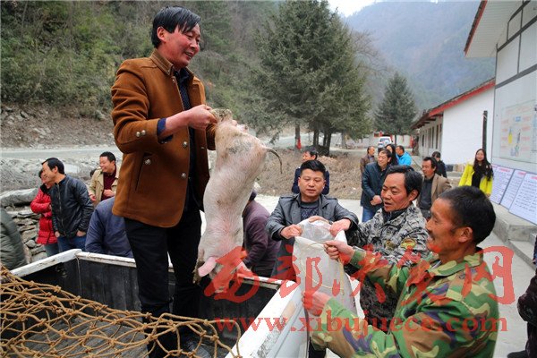 花石村的貧困戶(hù)正在領(lǐng)取免費(fèi)豬仔