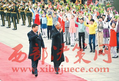 會(huì)談前,習(xí)近平在人民大會(huì)堂東門外廣場(chǎng)為吳廷覺舉行歡迎儀式。習(xí)近平主席夫人彭麗媛、全國(guó)人大常委會(huì)副委員長(zhǎng)嚴(yán)雋琪、國(guó)務(wù)委員楊潔篪、全國(guó)政協(xié)副主席王家瑞等出席。