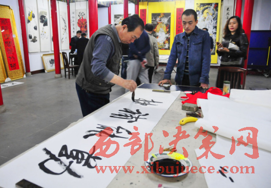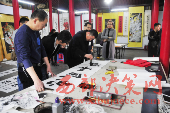 西部決策網(wǎng)-西部大開發(fā)訊(胡玉敏 通訊員 李海其 胡玉軍)4月13日下午,河北省邢臺市橋西區(qū)知聯(lián)會、邢臺市橋西區(qū)政協(xié)第三委員小組,在紫金公園聚義廳開展了書法文化交流活動?;顒犹匮沂兄麜嫾椰F(xiàn)場揮毫潑墨,切磋書畫技藝,創(chuàng)作作品20余幅。民盟市委副主委付曉婭,橋西區(qū)政協(xié)主席張建波、區(qū)政協(xié)副主席趙振群、王之良等領(lǐng)導(dǎo)應(yīng)邀參加。