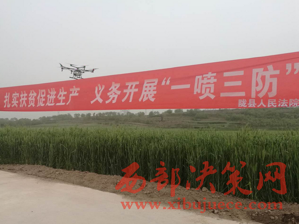 普樂塬村是隴縣法院幫扶的貧困村,針對村內(nèi)青壯年大多外出打工,勞動力不足的情況,為確保小麥高產(chǎn),減輕村民負擔,同時引導大家關注科技種田,轉(zhuǎn)變思維方式,經(jīng)法院駐村第一書記路云多方聯(lián)系,隴縣法院花費3萬元,租用無人機免費為普樂塬村噴灑農(nóng)藥。預計用2天時間為全村2000畝小麥進行防蟲霉菌預防,同時也邀請縣農(nóng)機推廣中心對藥品質(zhì)量進行全程監(jiān)督。