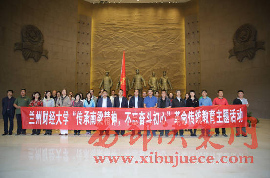 西部決策網(wǎng)-西部大開發(fā)訊(李海瑞 芮永慶 通訊員 趙高銪)2017年5月20日,蘭州財經(jīng)大學(xué)黨委副書記王亦達(dá)一行走進(jìn)南梁紅色旅游景區(qū),在景區(qū)管委會辦公室主任張全鈺和南梁革命紀(jì)念館館長聶明靜陪同下,開展以“傳承南梁精神  不忘奮斗初心”為主題的革命傳統(tǒng)教育活動,實地參觀南梁革命紀(jì)念館和陜甘邊區(qū)蘇維埃政府(部委)舊址;并舉行“愛國主義教育基地”、“馬克思主義學(xué)院科研基地”揭牌儀式,王亦達(dá)、聶明靜、張全鈺先后致辭和揭牌,蘭州財經(jīng)大學(xué)及南梁革命紀(jì)念館干部職工80多人參加本次活動。