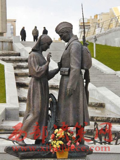 白俄羅斯衛(wèi)國(guó)戰(zhàn)爭(zhēng)歷史博物館入口處,立著一座雕像,背著槍的紅軍戰(zhàn)士正同心愛(ài)的姑娘依依惜別,雕像前常年鮮花不斷