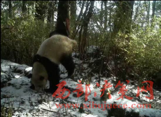 臥龍國家級自然保護區(qū)木江坪保護站紅外攝像機拍攝到的大熊貓在樹上做標記求偶