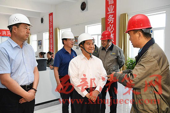 5月25日,自治區(qū)黨委書記、人大常委會主任李紀恒,在神華內蒙古煤焦化有限責任公司西來峰煤化工公司甲醇廠中控室調研。