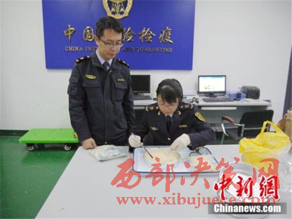圖為寧波郵路口岸截獲進(jìn)境帶活蟲大米檢驗(yàn)檢疫現(xiàn)場(chǎng)。