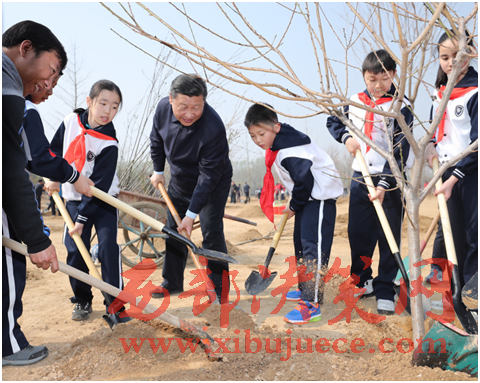 揮鍬鏟土填入樹(shù)坑,培實(shí)新土堆起圍堰,陽(yáng)春三月里,習(xí)近平總書(shū)記在北京市朝陽(yáng)區(qū)將臺(tái)鄉(xiāng)接連種下了一顆顆樹(shù)苗……