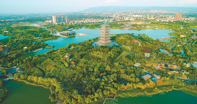 西安浐灞生態(tài)區(qū)鳥瞰。強宏攝