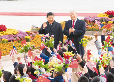 11月9日,國家主席習近平在北京人民大會堂東門外廣場舉行歡迎儀式,歡迎美利堅合眾國總統(tǒng)唐納德·特朗普對中國進行國事訪問。(記者 李學仁 攝)