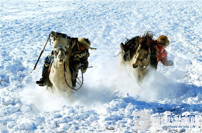 眼下,內(nèi)蒙古正值冬季旅游旺季,牧民們?cè)诎籽└采w的草原上馴馬,迎接八方游客的到來。
