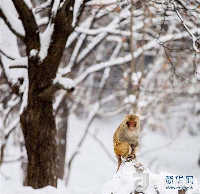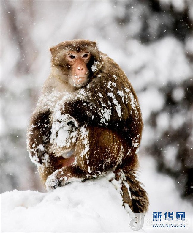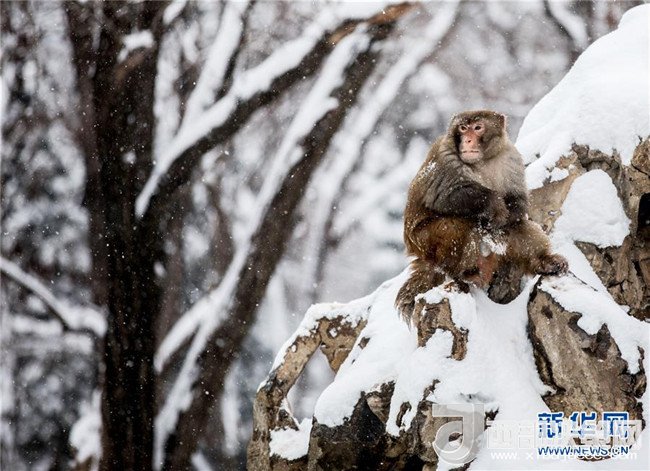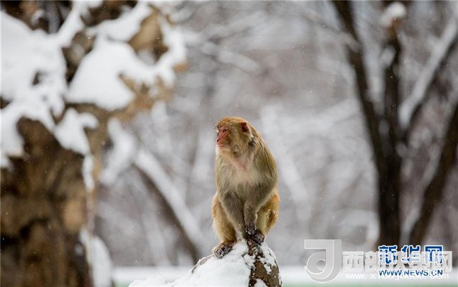 1月4日,安徽省淮北市相山公園的猴子獨立雪中。 當(dāng)日,淮北迎來一場強(qiáng)降雪。(王文 攝)