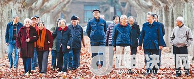 經歷20世紀50年代交大西遷的部分師生行走在西安交大校園內。王曉凱攝
